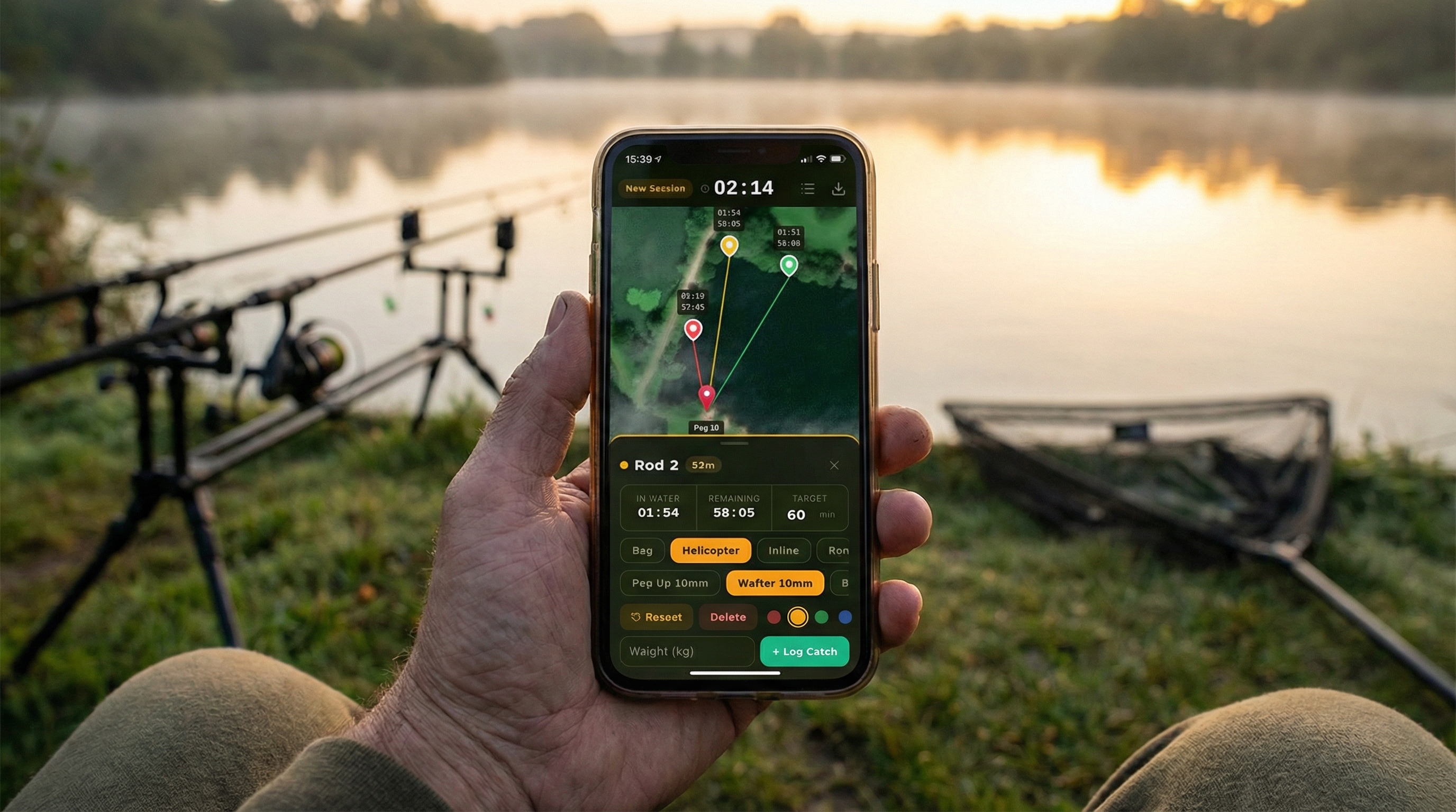A session tracker for carp anglers — satellite maps, cast timers, and bite logs. Built by and for the Carp Fishing Lab community.